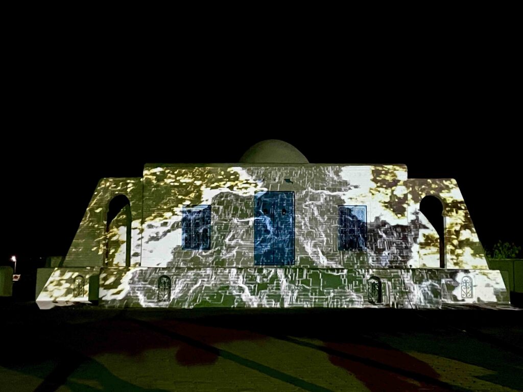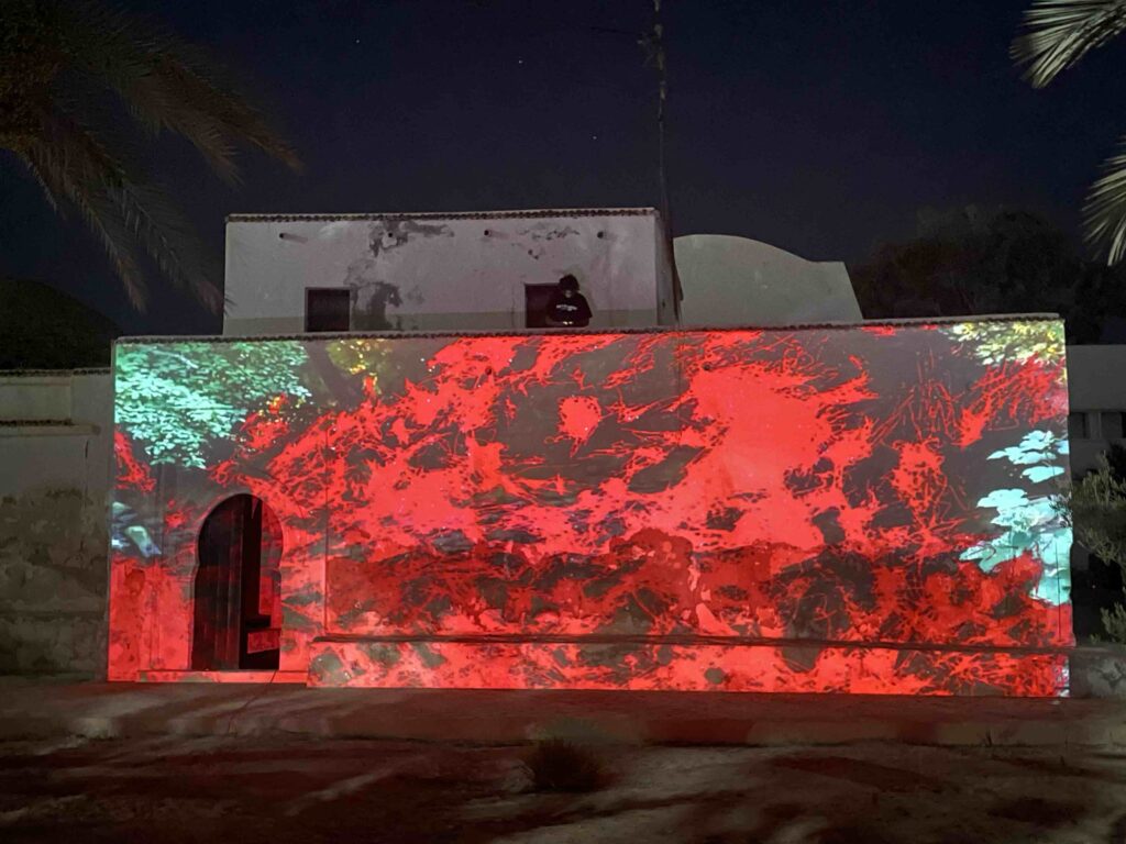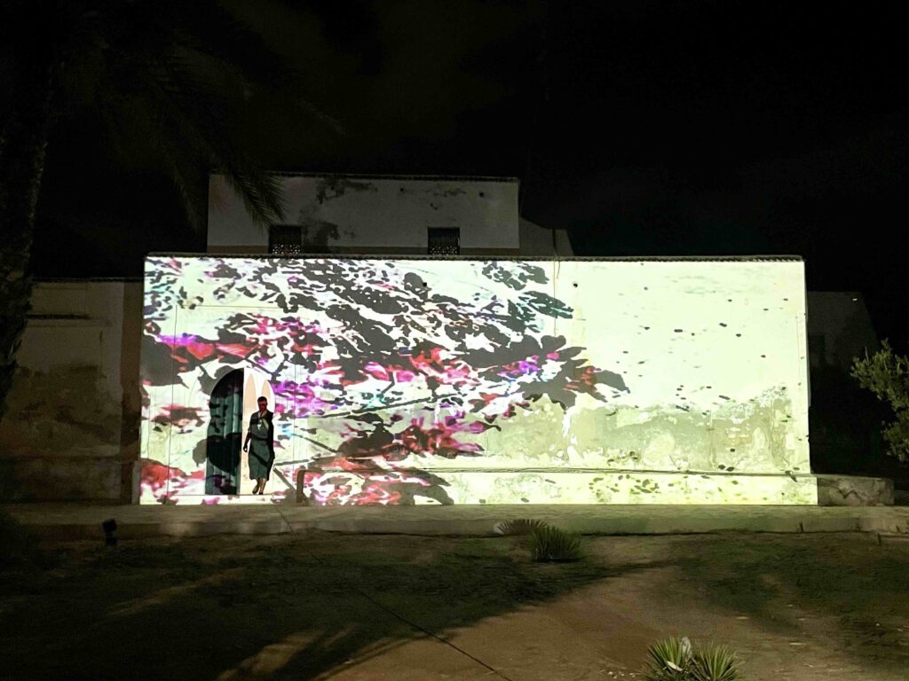 „ANGEL converts the old facade of the mausoleum of Sidi El Zitouni at the Traditional Heritage Museum Djerba into a projection surface, while transforming the palm garden in front of it into a performative resonance space. With its light and sound staging, it actively intervenes in the architectural and landscape situation, creating a hybrid place between historical architecture, public space and artistic experiment.