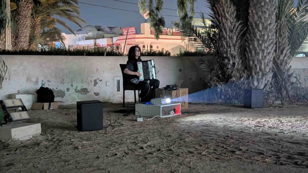live cinema concert with Anja Kreysing (accordion / electronic) and Maha Ben Hamed (Kanun): https://2025.seedjerba.net/anja-kreysing-maha-ben-hamed-guellala/